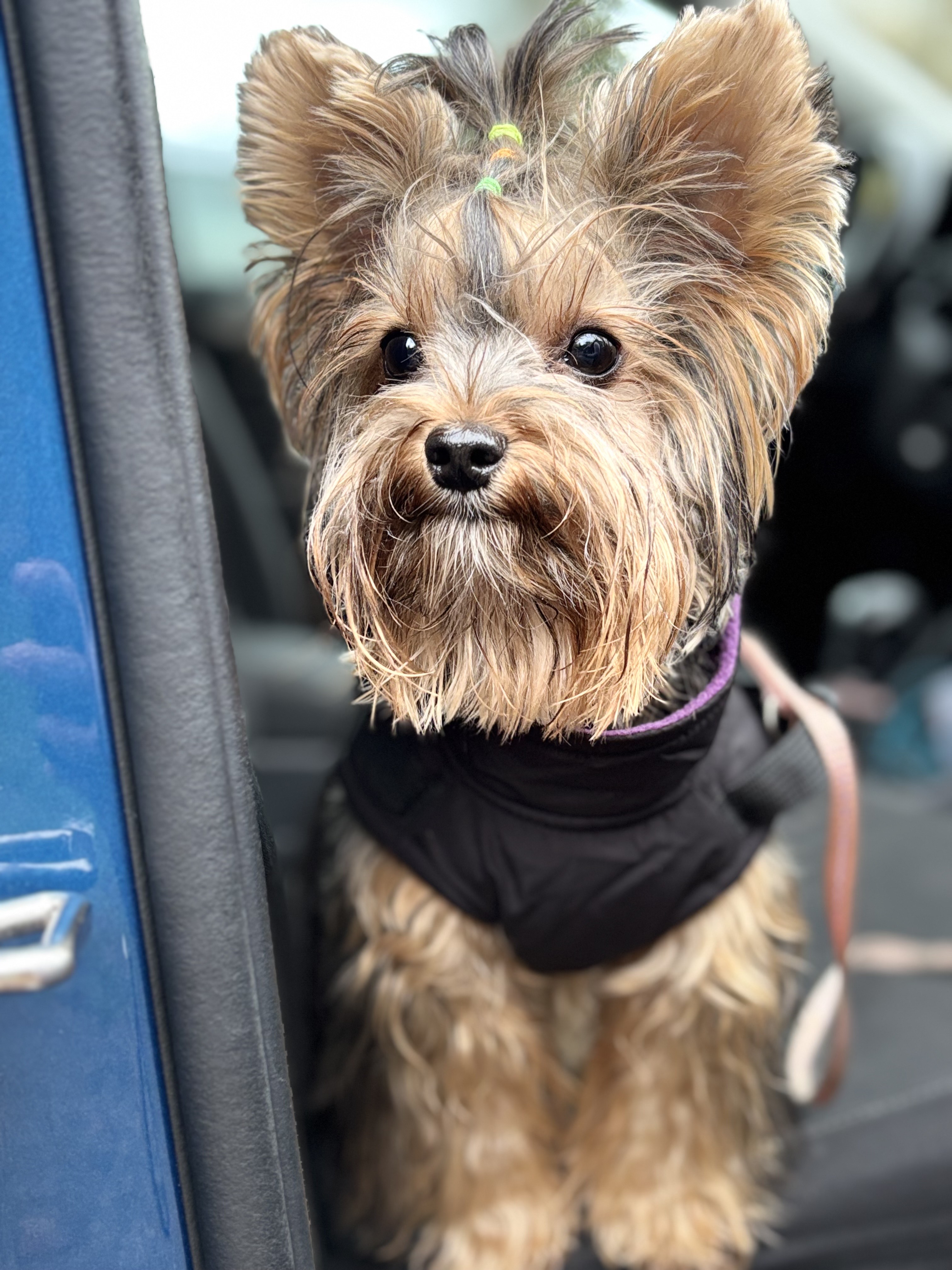 Die kleine Yorkshire Hündin Celine hat sich vorhin vor anderen Hunden auf dem Landesgartenschaugelände erschreckt und ist weggerannt.
