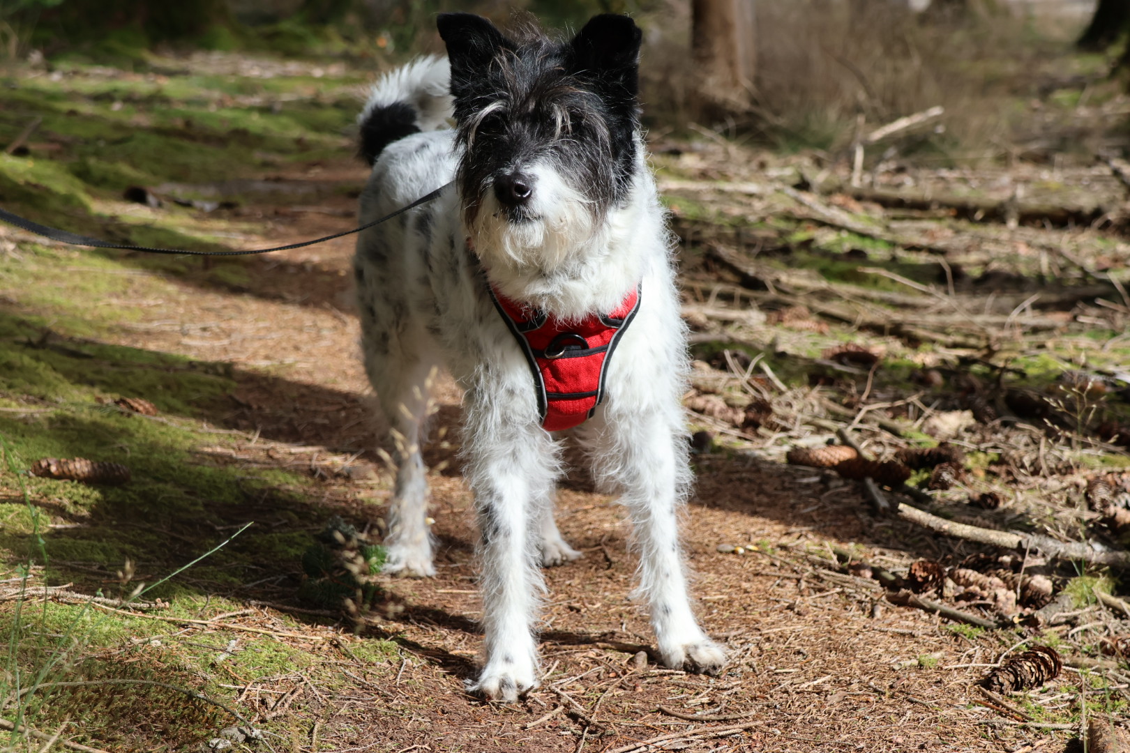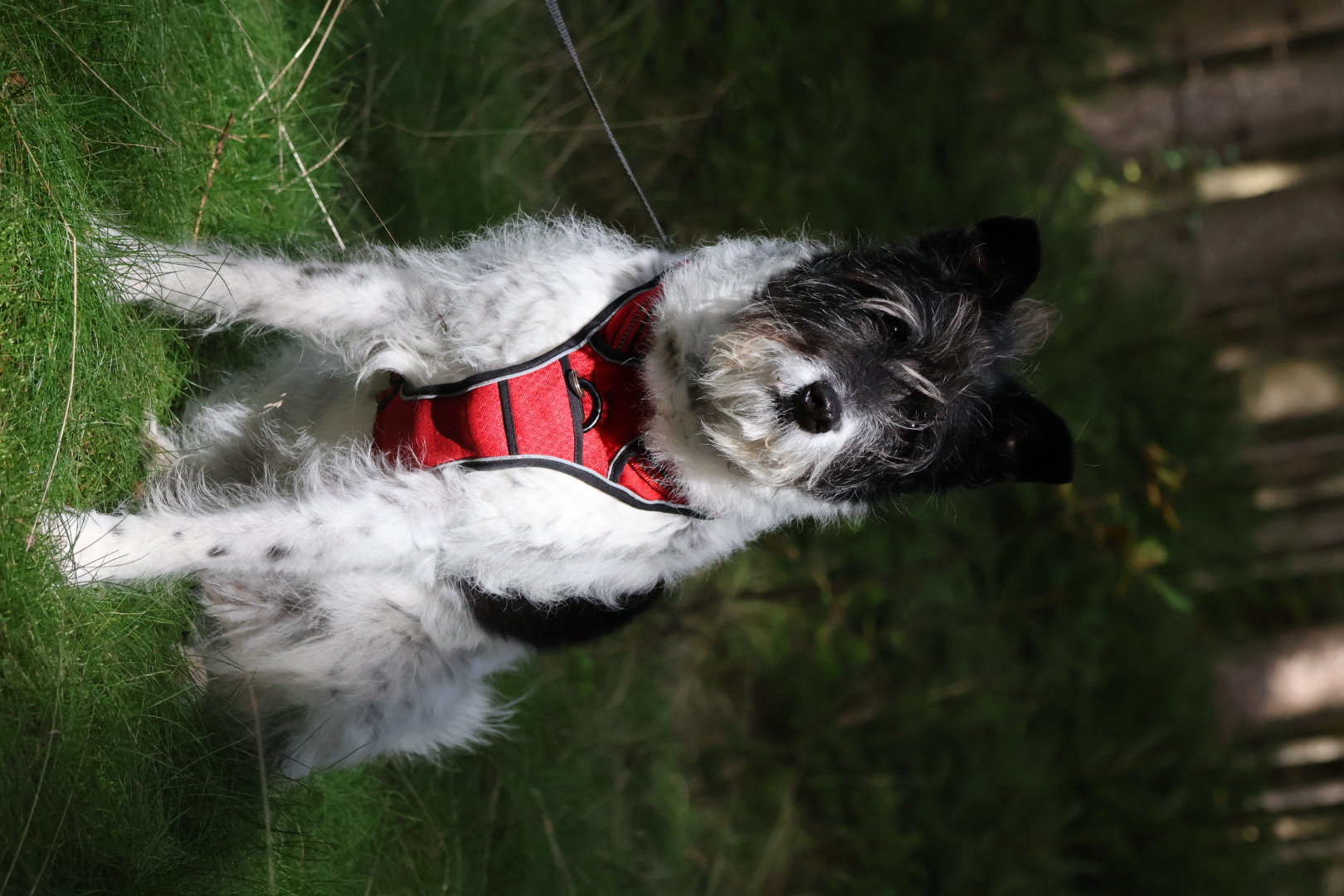 Sie geht gerne spazieren, läuft sehr gut an der Leine und hat ein angenehmes Lauftempo. Amy schlendert durch die Welt, schnüffelt mal hier und da und lässt draußen gerne die Seele baumeln. Mit Amy entschleunigt man auf den Gassirunden etwas seinen Alltag. Außer sie findet unterwegs ein Mauseloch: da wird die kleine Dame auf einmal ganz agil und kann buddeln wie ein Weltmeister. Da auch ein flitzender Feldhase durchaus ihr Interesse wecken würde, läuft sie derzeit noch mit einer Schleppleine, da der Rückruf in solch einer Situation noch nicht sicher klappen würde.