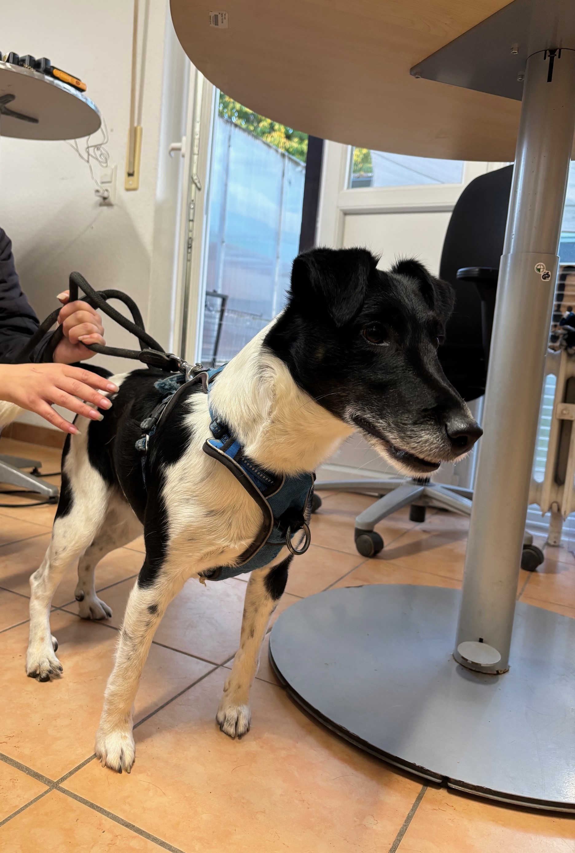 Dieser schwarz-weiße Fox-Terrier-Mix Rüde wurde heute am