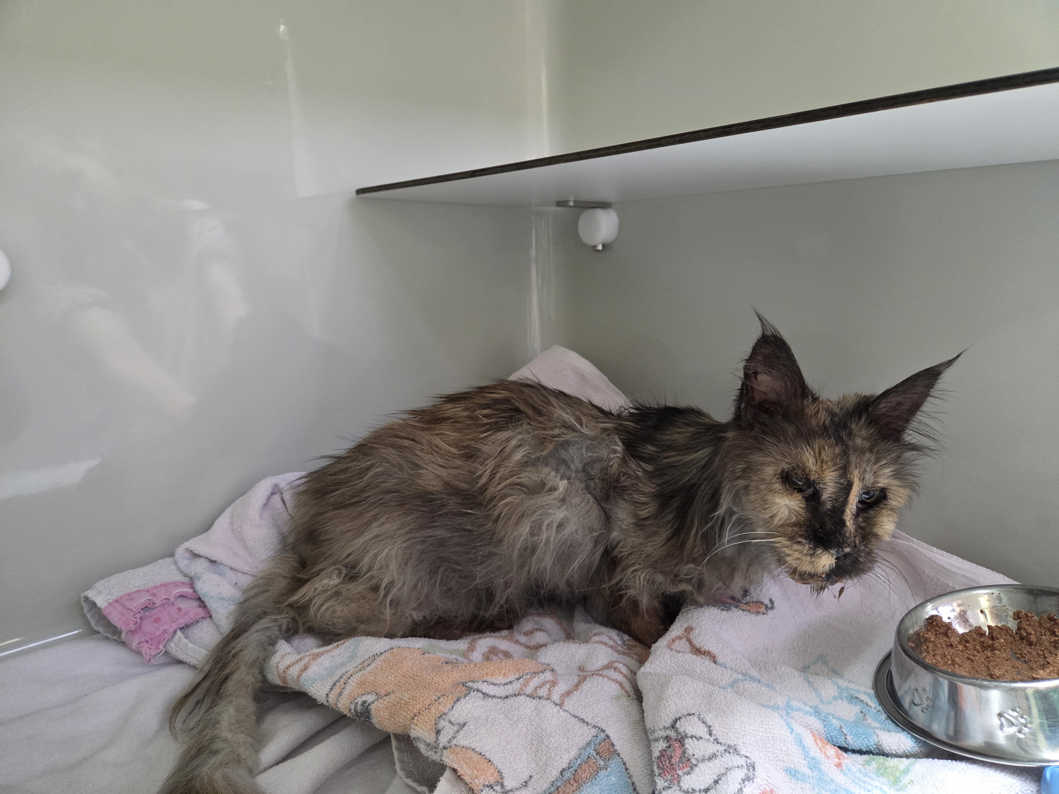 Wir gehen von einem weiblichen Tier aus, können es aber auf Grund der Verfilzungen noch nicht hundertprozentig sagen.