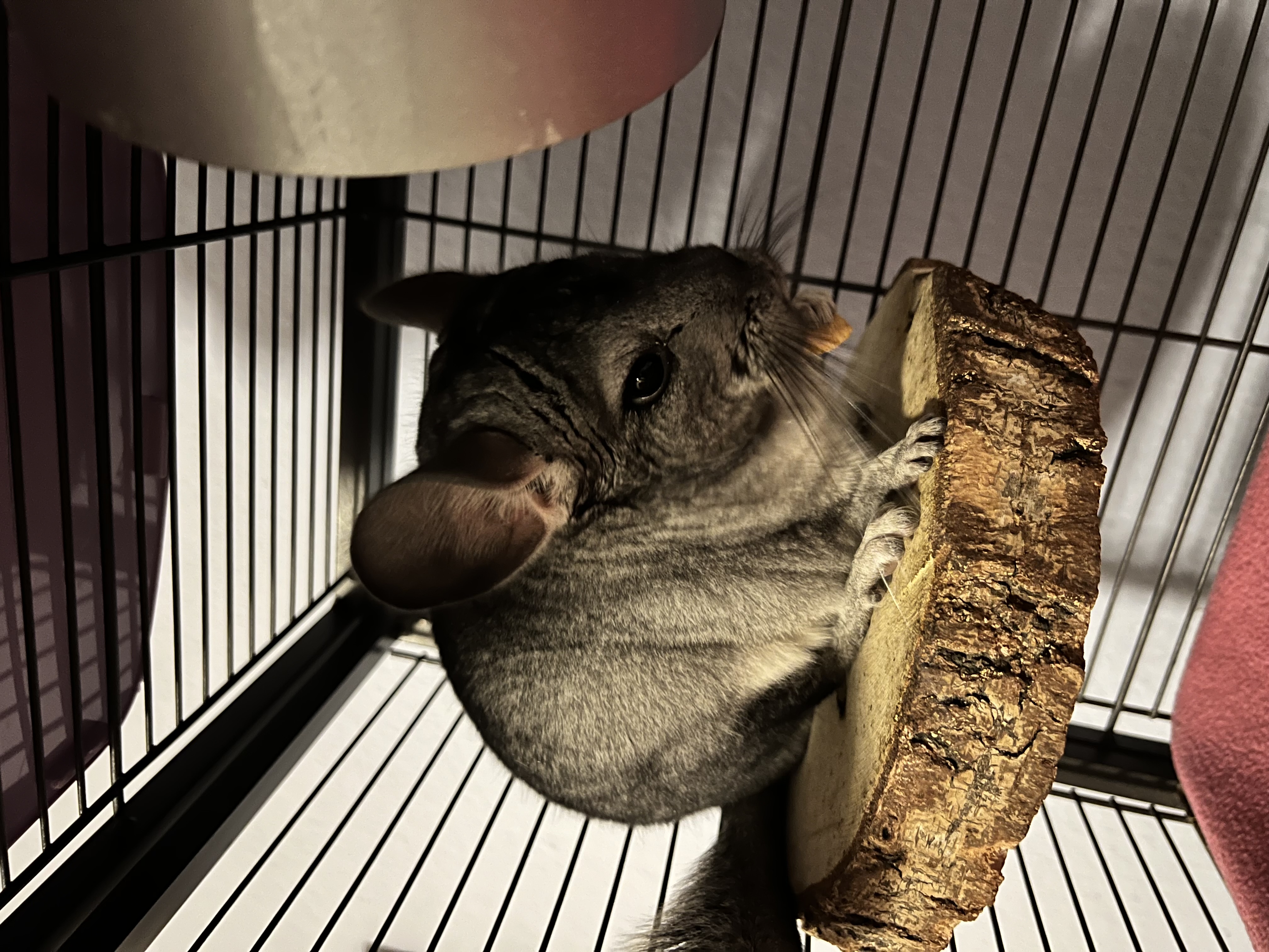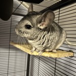 Crumble ist ein junges, neugieriges Chinchilla mit ruhigem Wesen.