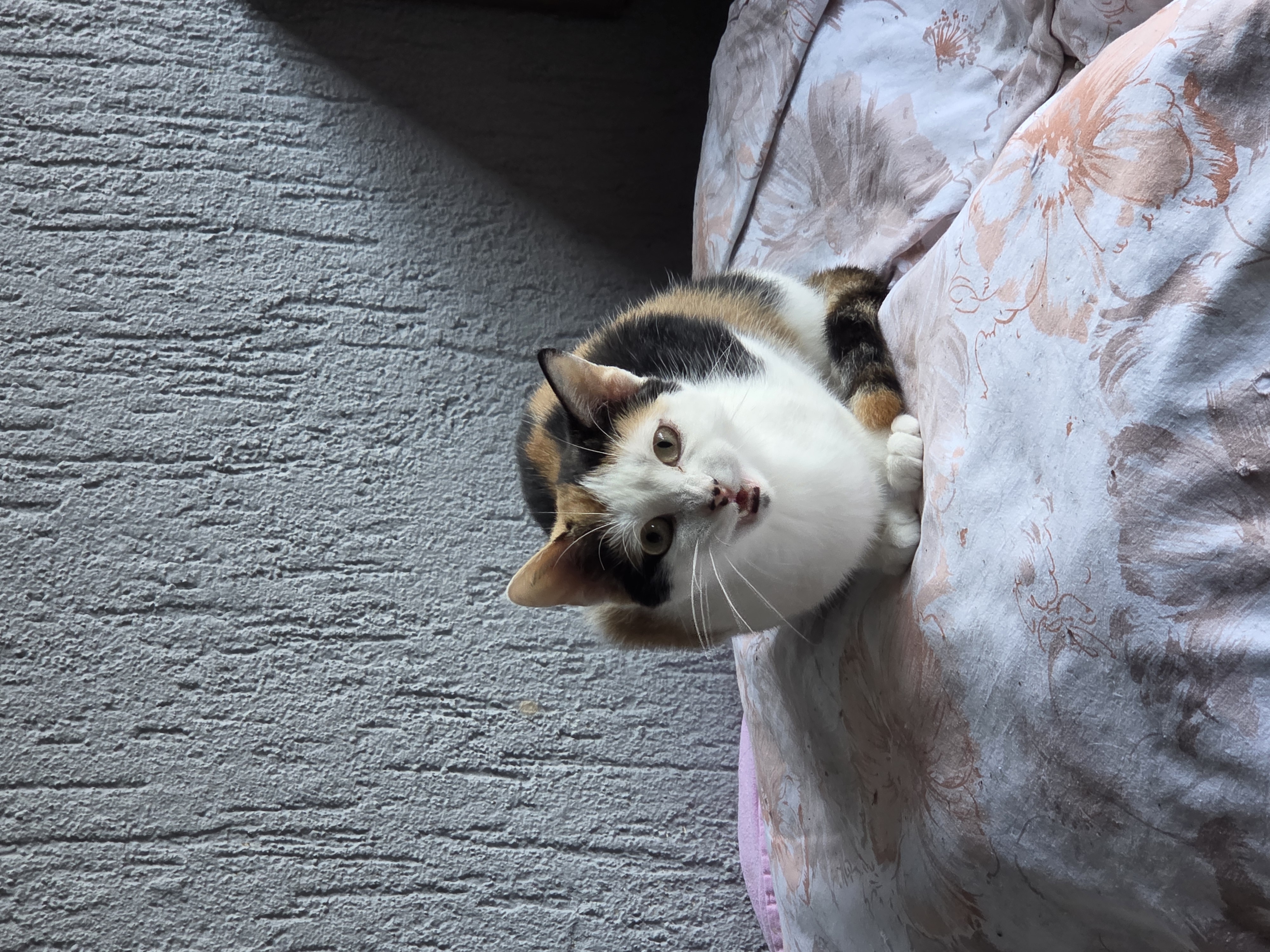 Die hübsche Katzendame hat sich eines Tages unserer Freigängerkolonie angeschlossen. Wir haben uns erst gewundert und sie dann ganz schnell gesichert, da Madame offensichtlich guter Hoffnung war.