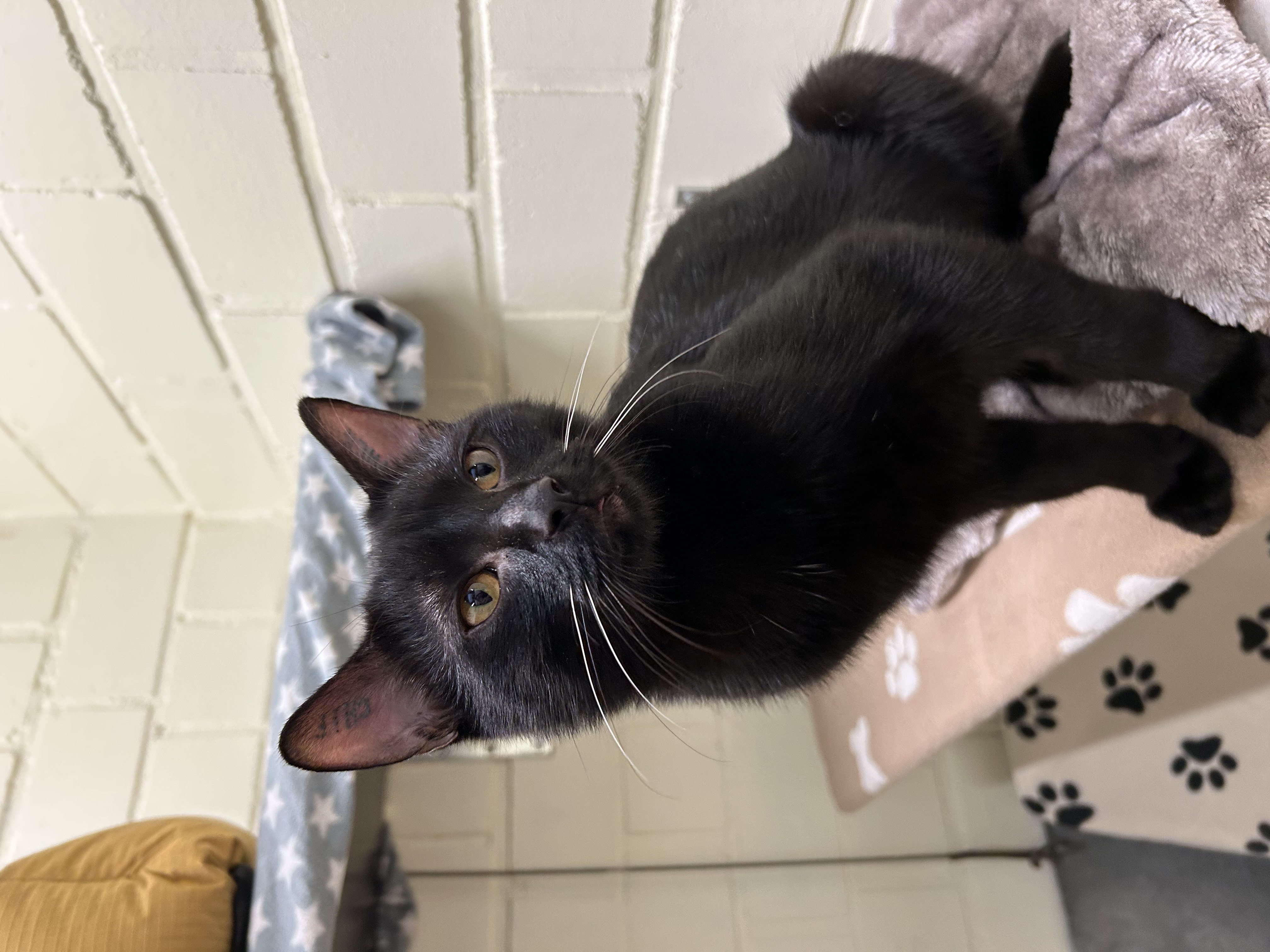Der schwarze ca. dreijährige Kater gibt gerne Vollgas und hat ordentlich Temperament.